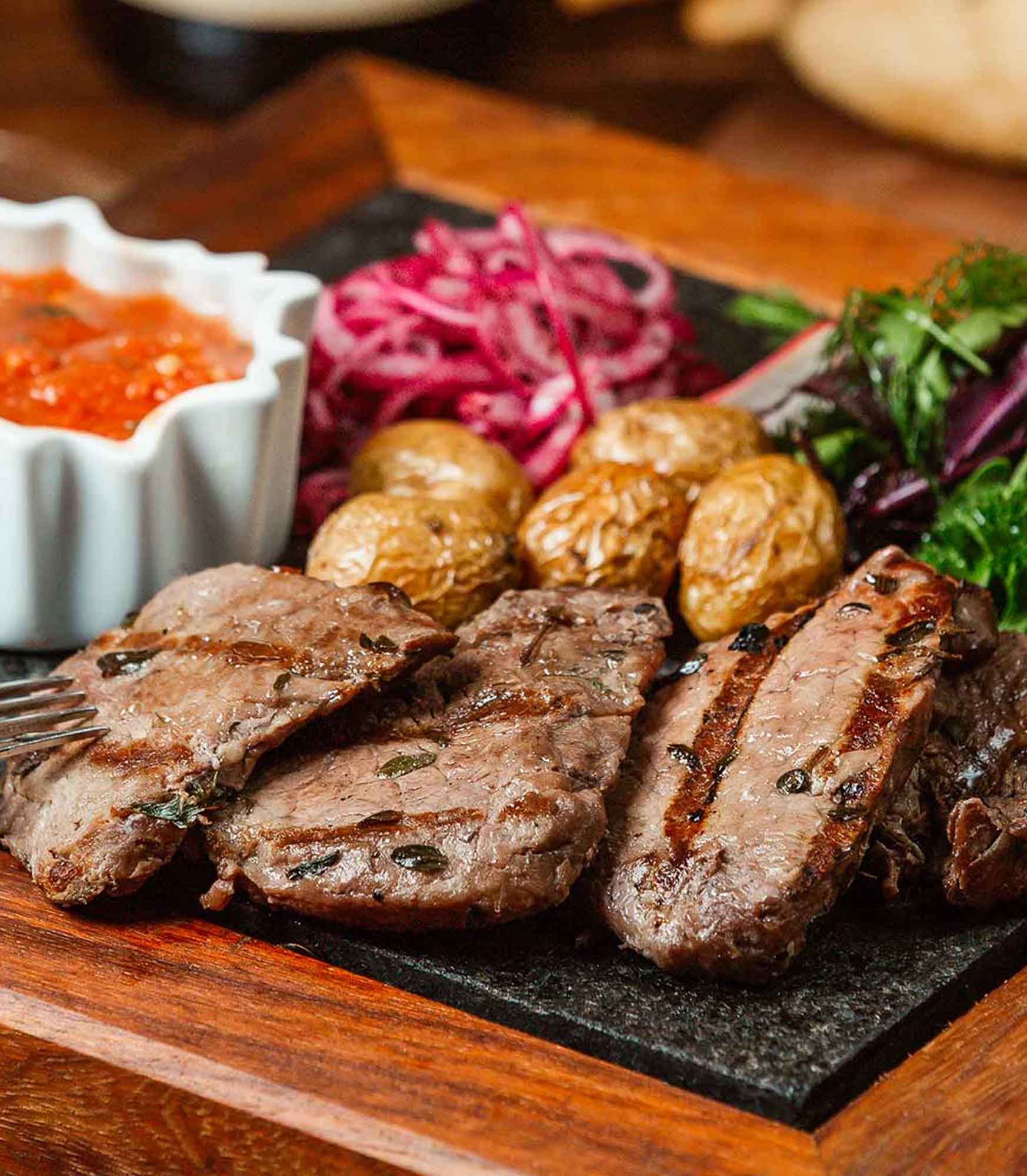 El churrasco proviene de la falda de la res, es un corte especial que es popular en primavera y verano